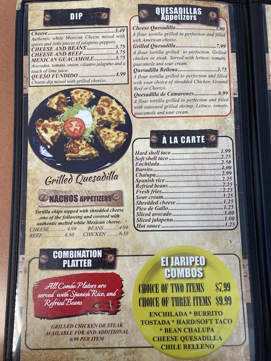 Choice for two items or three. Served with rice and bean. Enchiladas Burrito Tostada Hard/Soft Taco Beef or Bean Chalupa Cheese Quesadilla
